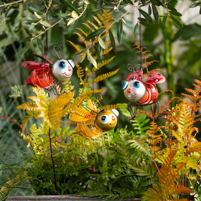 A suspendre partout dans vos jardins, des Objets Lumineux de Décoration Solaire Ludiques et colorées jour et nuit, des touches de lumière pour le soir, ce Lot de 2 Abeille et Coccinelle solaires égayeront vos espaces de vie.