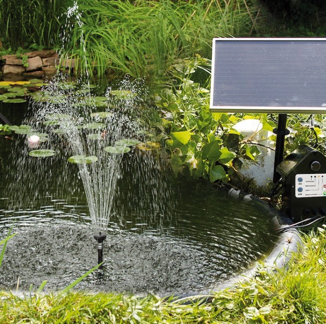 Pompe Fontaine Solaire de Bassin Batterie et Led 250 L/H-KSP2-V2. Vous pouvez également dans vos mares ou étangs associer le