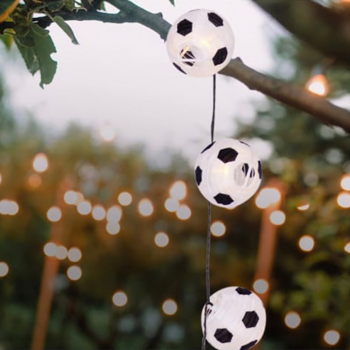 Sympathique objet de décoration ludique pour cette Guirlande Solaire 10 Ballons de Foot, idéale pour mettre l'ambiance dans vos soirées Foot entre amis !