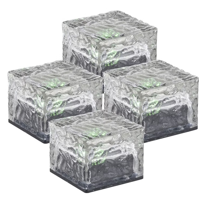 Un Lot de 4 Lampes solaires de balisage au sol Design, beau rendu de l'éclairage solaire avec ces pavés solaires en verre RGB à couleurs changeantes.