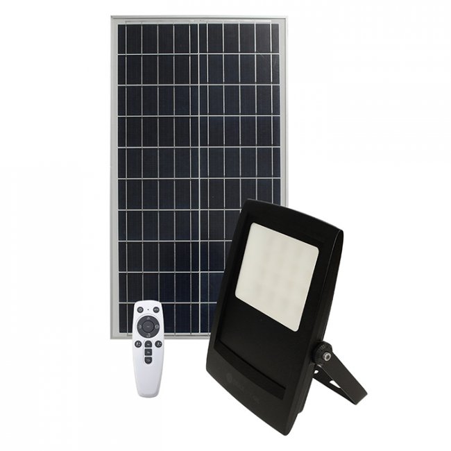 Le panneau photovoltaïque cristallin de 35 W cadré aluminium verre collecte l'énergie du soleil la journée, la stocke dans la batterie Lithium de 114,56 WH intégrée au projecteur solaire pour alimenter les Led automatiquement à la tombée de la nuit par son détecteur crépusculaire en mode par défaut ou selon les modes de règlage choisis, horaires, puissance, le mode de fonctionnement de l'éclairage constant et ou en détection de mouvements sont programmables par sa télécommande.